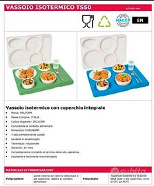 Vassoio isotermico a quattro comparti, per il trasporto di pasti a temperatura controllata. Elevato coefficiente di isolamento termico, può mantenere il cibo caldo o freddo già porzionato in condizioni ottimali fino a 30 minuti. Dimensione esterna EN:
