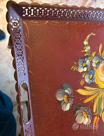 Vassoio in metallo laccato, oggetto decorativo noto come "tôle" o "toleware"