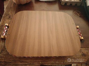 vassoio anni 70 murano vetro e legno sotto misura 44 cm x 70 cm compresi i manici