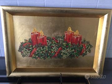Bellissimo vassoio natalizio color oro con candele. Misure : cm 41x29