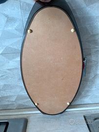 Vassoio moderno e leggero in plastica rigida, ideale per servire snack o colazioni. Design ovale con superficie rossa e bordo nero. 45 cm diametro