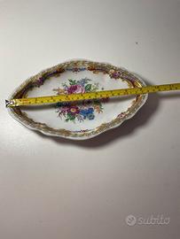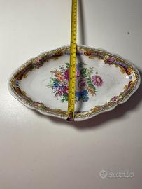Elegante vassoio ovale in porcellana Limoges, decorato con un motivo floreale vivace.