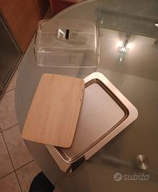 Vendo vassoio copri formaggi/salumi della Guzzini, composto da: vassoio cm 30x22, tagliere in legno e coperchio trasparente in plastica resistente. A parte qualche piccolo graffio sul vassoio il prodotto è perfetto. Mai stato usato! Senza confezione originale