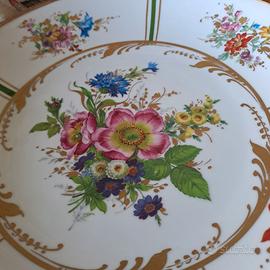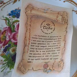 in Porcellana Tiche (Decortiche) con Decori Floreali e Manici in Bronzo Dorato