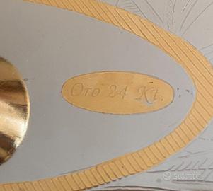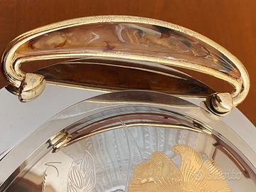 Vassoio per servire il pesce in acciaio inox 18/10 con particolari in oro 24 carati.