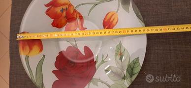 Elegante vassoio da centrotavola con una splendida decorazione floreale. Motivo di tulipani e rose, realizzato in vetro di alta qualità.
