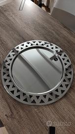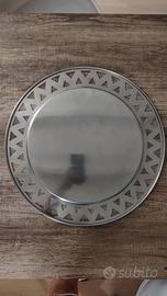 Vassoio rotondo Alessi collezione Edges. Disegnato dal duo King-Kong (Stefano Giovannoni e Guido Venturini) nel 1995. Acciaio inox 18/10 lucido con bordo traforato a motivo geometrico. Diametro 48 cm. Condizioni ottime, nessun graffio. Made in Italy.