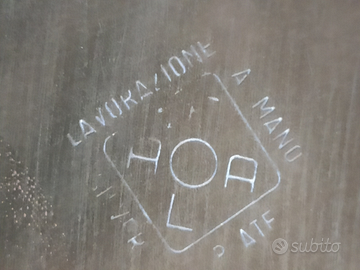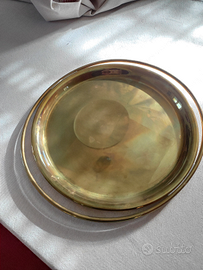 Vendo vassoio rotondo lavorato a mano in metallo/peltro nuovo mai usato. Necessita solo di una lucidata con prodotto adatto allo scopo.