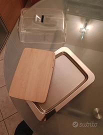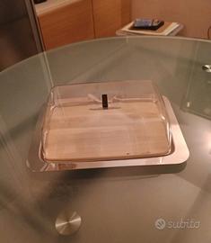 Vendo vassoio copri formaggi/salumi della Guzzini, composto da: vassoio cm 30x22, tagliere in legno e coperchio trasparente in plastica resistente. A parte qualche piccolo graffio sul vassoio il prodotto è perfetto. Mai stato usato! Senza confezione originale.