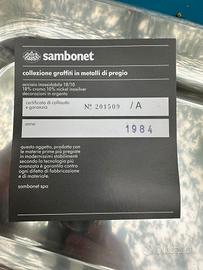 elegante vassoio originale Sambonet, appartenente alla collezione “Graffiti in metalli di pregio”, datato 1984. Realizzato in acciaio inox 18/10 con decorazioni in argento (Inoxilver), Il vassoio si presenta in ottime condizioni ed è completo di certificato originale Sambonet, dettaglio che ne aumenta il valore e l’autenticità prezzo 65€ trattabile