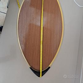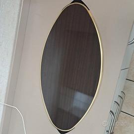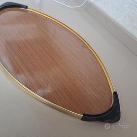 Vendo vassoio con fondo in legno bordi color oro e manici in plastica. Diametro 69 cm nuovo
