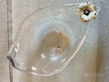 Vassoio/svuota tasche cristallo, fiore argento 925