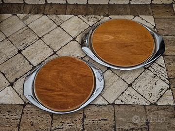Vendo vassoio tagliere AMC in buone condizioni, in acciaio inox e legno frassino cm 20 di diametro. I due pezzi possono essere utilizzati anche singolarmente, uno come vassoio e uno come tagliere.