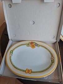 Vassoio ovale Thun linea Country in porcellana decorata a mano con motivi floreali e simboli naturali. Mis. 38x28 cm