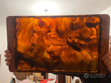 Vassoio in Lucite anni 70, 60x35 . Effetto tartaruga. Unico difetto , poco visibile, ingrandito nella terza foto