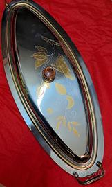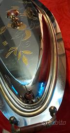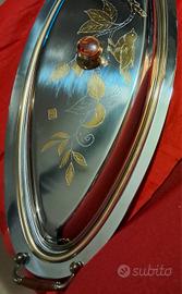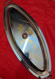 vassoio vintage in acciaio inox con decoro in oro
