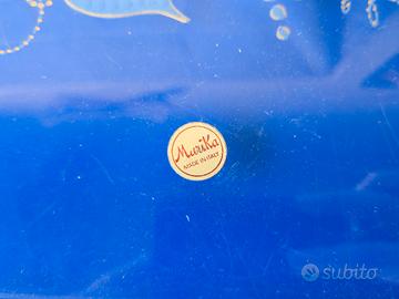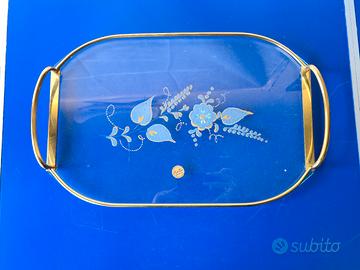Come da titolo vendo legante vassoio vintage con decorazioni floreali, in vetro e rifiniture in metallo dorato. Marchio Marika Made in Italy. Perfetto per arredamenti o collezionisti. Ottime condioni generali. Misure: 45x28cm circa.
