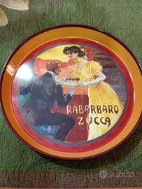 Splendidi vassoio pubblicitario vintage dedicato al Rabarbaro Zucchi. Originali in latta in ottime condizioni. Anni '80-'90. Diametro 30 cm.