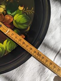 Vassoio decorativo vintage russo dipinto a mano. Diametro 29 cm