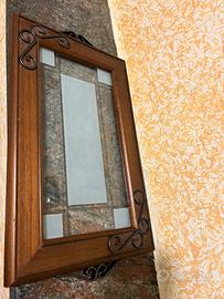 Vendo elegante vassoio vintage in legno decorato e piano in vetro, ideale per servire la colazione, decorare la cucina o come idea regalo.