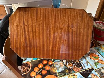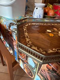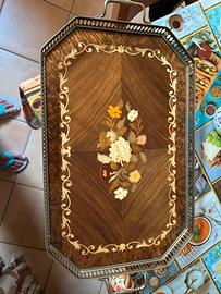 vassoio da portata vintage italiano di Sorrento in legno intarsiato con motivo floreale e bordo in ottone.