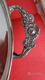 VENDO VASSOIO IN SILVER PLEATE CON MOTIVO "BACCHETTATO" E MANICI A FORMA DI FIORE . LISCIO INTERNAMENTE E MOLTO LEGGERO. Abbinabile al porta vivande rettangolare con coperchio liscio.(vedi annuncio specifico)