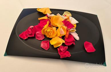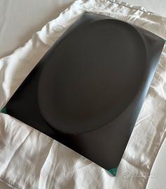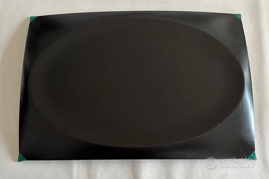 Vassoio/piatto da portata in acciaio nero opaco con puntali verdi. Design Philippe Starck per Alessi 1992.