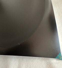 Rettangolare con effetto sospeso per i piedini a punta. Usato pochissimo, davvero pochi e piccoli segni inevitabili perché la superficie è sensibile ai graffi ma presenti in tutti gli esemplari usati. Facilmente eliminabili con una mano leggerissima di olio. Direi in ottime condizioni di usato.
