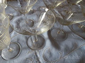 Vendo 13 calici da spumante come da foto 4 calici e 9 coppe serigrafate ,posso inviare altre foto. Per la delicatezza dei soggetti è preferibile il ritiro a mano.