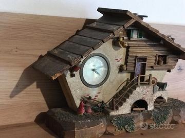 Vecchia baita, chalet di montagna in legno con orologio meccanico funzionante, oggetto artigianale completamente realizzato a mano, anni '50.
