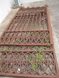 Cancello risalente ai primi del '900, con evidenti tracce di ruggine e, a parte questo, in un ottimo stato strutturale Consta di 2 ante: 1 larga 260 e l'altra 270 cm. L'altezza è di 280 cm