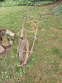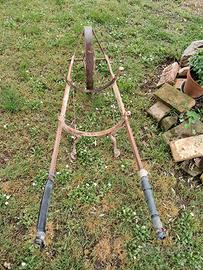 Telaio di vecchia carriola motopompa anni 60 ideale da adibire a portavasi con fiori per arredo giardino . molto bello. lunghezza circa 1.5 mt.