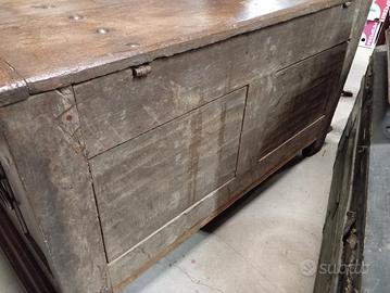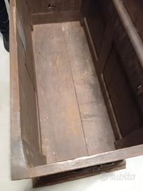 vecchia grande cassapanca in legno scolpita
