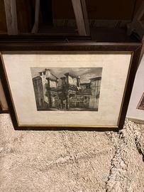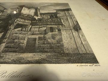 Incisione di Domenico Amici, disegno dal vero, Avanzi del Foro Palladio Vicenza, anno 1832, completa di cornice in ottimo stato, euro 40 vendo.