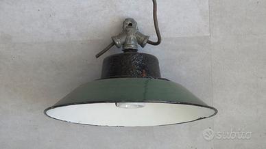 VECCHIA LAMPADA INDUSTRIALE SMALTATA bianco verde