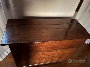 Vendo vecchia madia in legno già restaurata come da foto con le seguenti dimensioni larghezza coperchio centimetri 110, larghezza frontale centimetri 100 altezza centimetri 86, profonditàcentimetri 43
