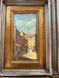 Pregevole serie di dipinti a olio su tavola del 1980, firmati dal maestro Zanin. Le opere catturano l'essenza della Milano storica con uno stile vibrante e ricco di luce.