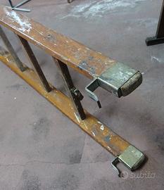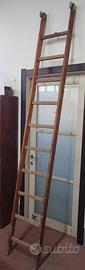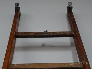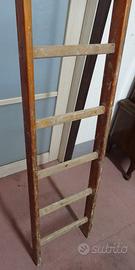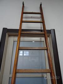 Bellissima e vissuta scala in legno da libreria con aggancio in metallo nella parte superiore.