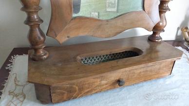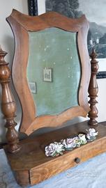 specchiera da appoggio, molto vecchia ma perfetta, completa di cassettino, lo specchio é originale dell'epoca. preferisco il ritiro a domicilio oppure mandi lei il corriere a ritirarla dopo avvenuto bonifico, in modo che non venga danneggiata durante il trasporto