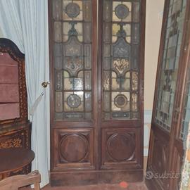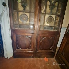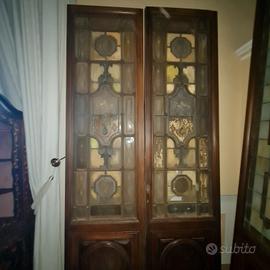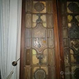 coppia vecchie porte con vetro piombato e decorazioni, "ex banca commerciale italiana Firenze "