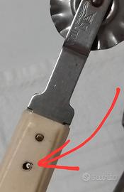 3 vecchie rotelle per tagliare la pasta anni 50 /60 in acciaio INOX e manico in materiale plastico, vecchi utensili delle nostre nonne . Sono tutte in buone condizioni, da segnalare solo un passante in ottone "mancante" nel manico di quella più vecchia ( vedi ultima foto). Nonostante questo il manico è completamente fermo e non si nota assolutamente la mancanza .