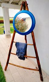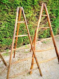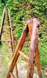 Vecchissime scale triangolari agricole di fine Ottocento inizio Novecento, molto affascinanti e suggestive grazie ai nodi e le curvature create nei numerosi decenni e alle varie defezioni che le conferiscono un carattere senza tempo. Ottimo elemento di arredo casalingo come porta panni ma ancor più affascinante per allestimento negozi, vetrine o ristoranti. (ATTENZIONE) TUTTE E 3 LE SCALE HANNO SUBITO IL TRATTAMENTO ANTITARLO IN CAMERA A GAS SOTTOVUOTO PROFESSIONALE QUINDI SONO SICURE. Dimensioni: 1) 210 x 74 cm max. 2) 200x 114 cm max. 3) 180 x 80 cm max. Legno di ciliegio. Possono essere appoggiate alla parete oppure in piedi grazie alla terza gamba mobile fissata alla struttura con una vecchia vite in ferro. Segni del tempo e di vecchi ospiti. ---VALUTO OFFERTE---