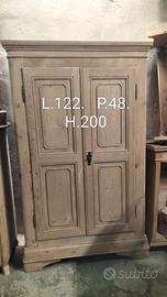 Armadio dell' ottocento in legno di abete, restaurato e lasciato al grezzo.
