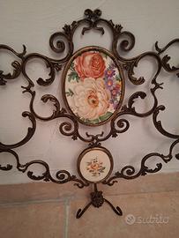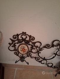 In ferro battuto con 4 inserti floreali e 6 ganci per appendere foulards, cappelli ecc.