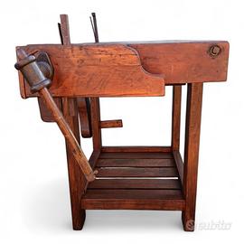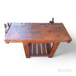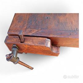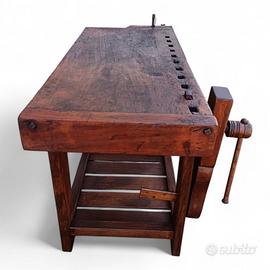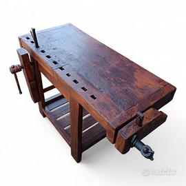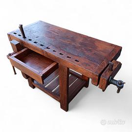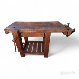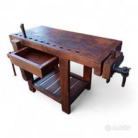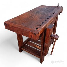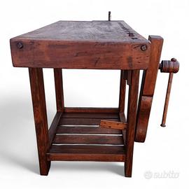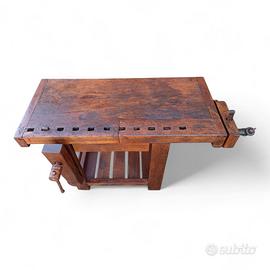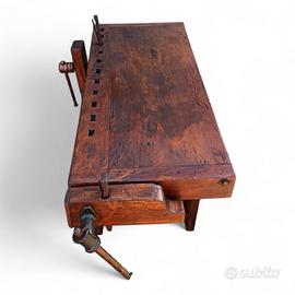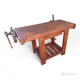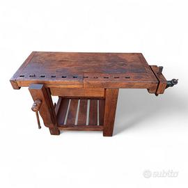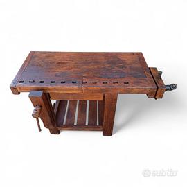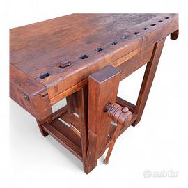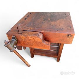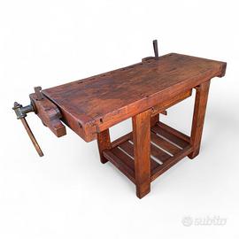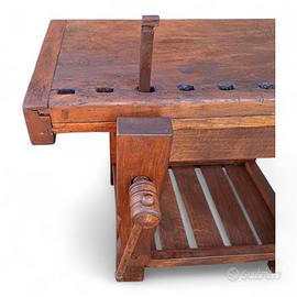Vecchio banco da falegname con doppia morsa