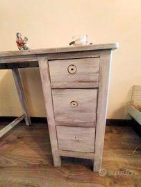 Vecchio banco da scuola 3 cassetti. Misure 83 per 47 profondo 72 alto. Bianco decapato. No perditempo per favore!