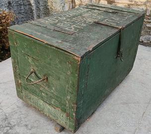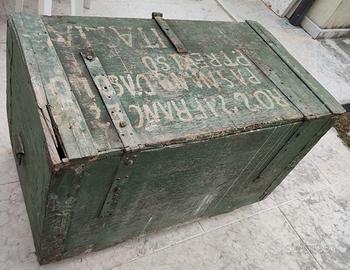 Vecchio Baule anni 50 in legno. Dimensioni: (lxhxp) 114x67x63cm. Una buona base per un restauro.
