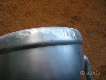 Il bollitore è in buone condizioni nonostante sia stato prodotto approssimativamente negli anni '50 /'60. E' regolarmente funzionante per scaldare acqua o per preparare the, tisane o qualsiasi altra bevanda calda. Il corpo del bollitore è in Alluminio mentre il manico e il pomolo del coperchio sono in bachelite di colore marrone scuro ottimamente conservata e adatta ad evitare scottature.