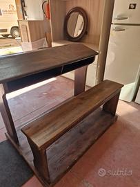 Vecchio ed antico banco da scuola due posti di epoca inizio 900 realizzato completamente in legno massello. Originale, non restaurato, in ottime condizioni e da subito ambientabile misure indicative : Largo cm.120, alto cm.90 con una profondit di cm.80. Peso cca 50 kg. Italiano ( Bologna ) firmato anche.