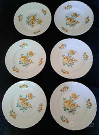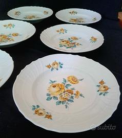 Sei piatti fondi in fine porcellana italiana della Richard Ginori, modello Vecchio Ginori, con decoro floreale a mazzetto.